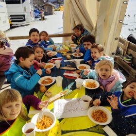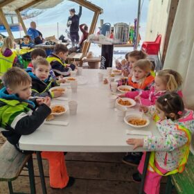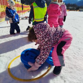 Takoj po prihodu so se otroci prepustili veselju na snegu, med teki, igrami in neizogibnim kepanjem. Po kosilu je bil sprehod z vodičem, gospodom Pierinom, posebna priložnost za odkrivanje narave, ki obdaja Forni di Sopra, in za spoznavanje živali, ki tam živijo. Dan se je zaključil z zabavo na igralih v čarobnem gozdičku.